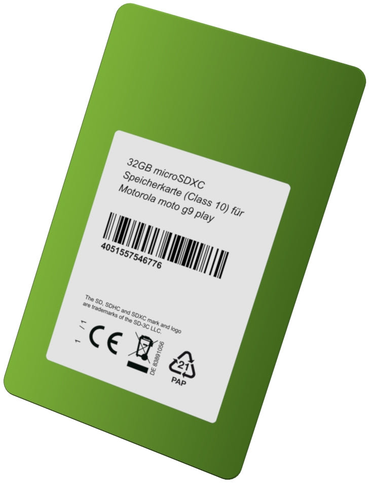 Diese DSP Memory 32GB microSD Speicherkarte ist optimal auf das Motorola moto g9 play abgestimmt und erfüllt die Leistungsstandards Class10, V10 und U1 für schnelle und zuverlässige Datenübertragung. Als Mitglied der SD Association steht DSP Memory für geprüfte Qualität und volle Kompatibilität. Diese Speicherkarte erweitert den Speicher Ihres Tablets deutlich und unterstützt anspruchsvolle Anwendungen sowie hochauflösende Medieninhalte. Für dieses Produkt wird eine Urheberrechtsabgabe an die ZPÜ (Zentralstelle für private Überspielungsrechte) abgeführt.
