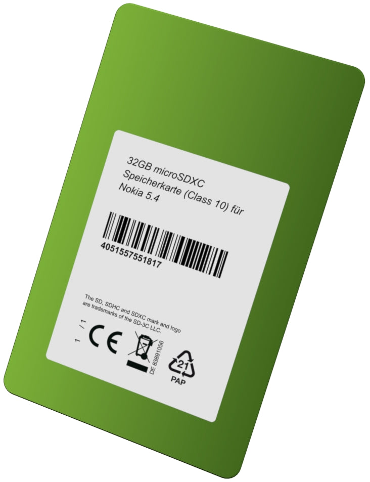 Diese DSP Memory 32GB microSD Speicherkarte ist optimal auf das Nokia 5.4 abgestimmt und erfüllt die Leistungsstandards Class10, V10 und U1 für schnelle und zuverlässige Datenübertragung. Als Mitglied der SD Association steht DSP Memory für geprüfte Qualität und volle Kompatibilität. Diese Speicherkarte erweitert den Speicher Ihres Tablets deutlich und unterstützt anspruchsvolle Anwendungen sowie hochauflösende Medieninhalte. Für dieses Produkt wird eine Urheberrechtsabgabe an die ZPÜ (Zentralstelle für private Überspielungsrechte) abgeführt.