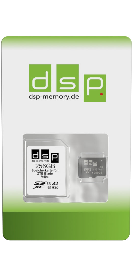 Diese DSP Memory 256GB microSD Speicherkarte ist optimal auf das ZTE Blade V40s abgestimmt und erfüllt die Leistungsstandards A2, V30 und U3 für schnelle und zuverlässige Datenübertragung. Als Mitglied der SD Association steht DSP Memory für geprüfte Qualität und volle Kompatibilität. Diese Speicherkarte erweitert den Speicher Ihres Tablets deutlich und unterstützt anspruchsvolle Anwendungen sowie hochauflösende Medieninhalte. Für dieses Produkt wird eine Urheberrechtsabgabe an die ZPÜ (Zentralstelle für private Überspielungsrechte) abgeführt.